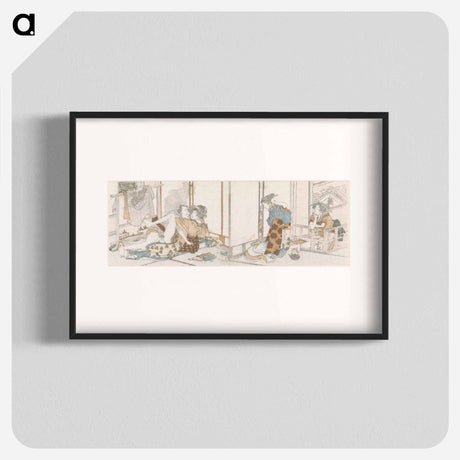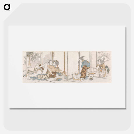 Pluimbal spelende man en vrouw - Katsushika Hokusai Poster.