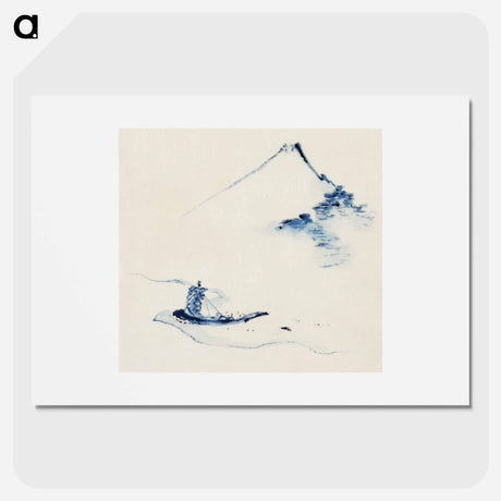 A Person in a Small Boat on a River with Mount Fuji in the Background - Katsushika Hokusai Poster.