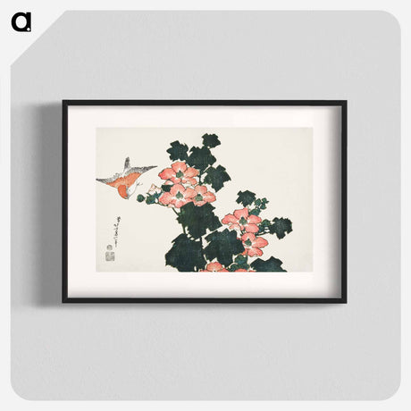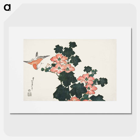 Red Roses and Bird - Katsushika Hokusai Poster.