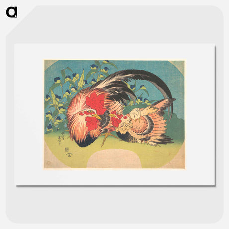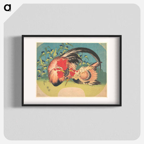 Rooster, Hen and Chicken with Spiderwort - Katsushika Hokusai Poster.