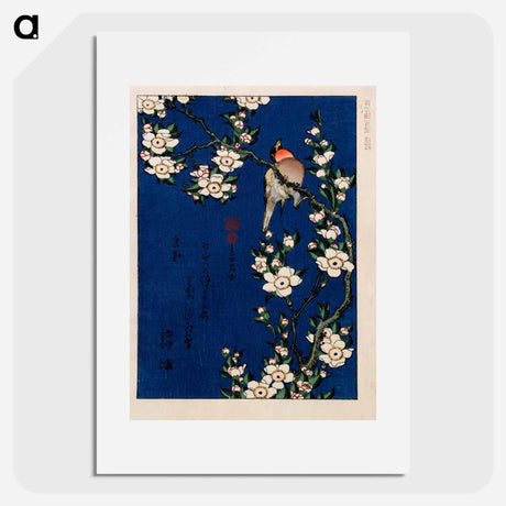 Robin on a branch of cherry blossom - Katsushika Hokusai Poster.