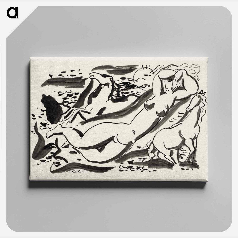 Ontwerp voor een vignet: naakte vrouw en twee paard met de zee op de achtergrond by Leo Gestel - Leo Gestel Canvas. - A5(148×210) is backordered and will ship as soon as it is back in stock.