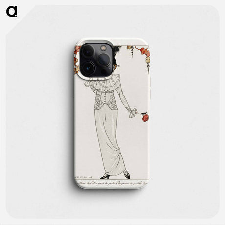 Costumes Parisiens, no. 8: Tailleur de Satin gris de perle. Chapeau de paille noir - ジョルジュ バルビエ Memo.