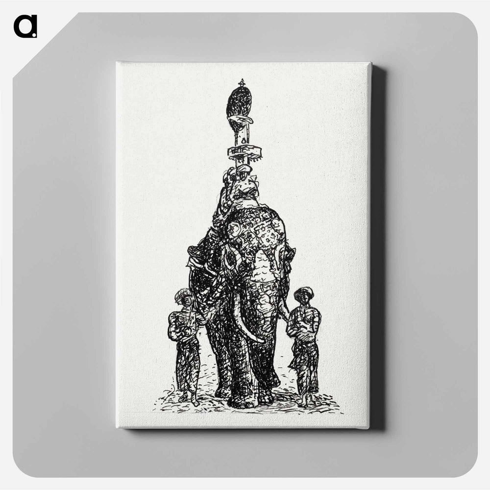 Indian elephant ridden by figures with two escorts - Leo Gestell Canvas. - A5(148×210) is backordered and will ship as soon as it is back in stock.