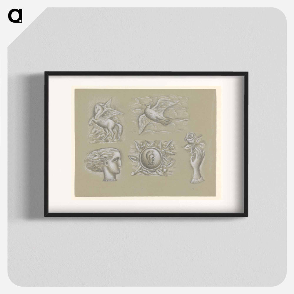 Pegasus, duif, vrouwenhoofd, wapen en hand met roos - Leo Gestel Poster.
