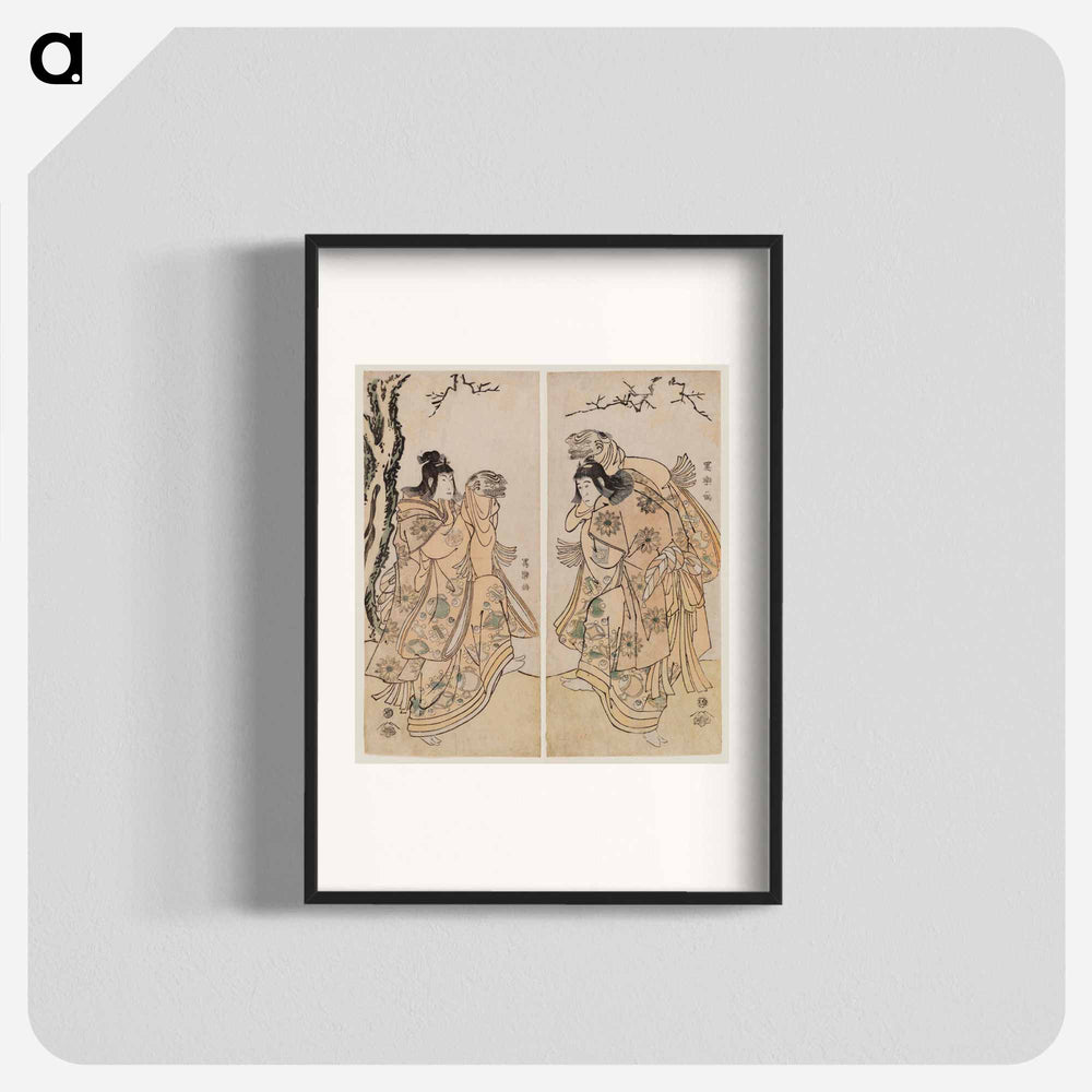 Ichikawa Yaozō III (R) and Nakayama Tomisaburō I (L) as Two Kamuro Performing a Lion Dance - 東洲斎 写楽 Poster.