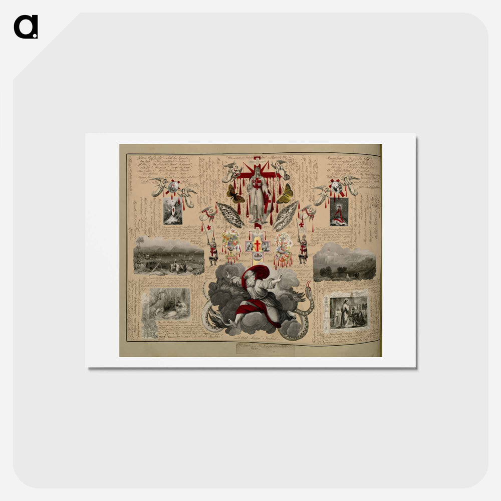ジョン・ビングリー・ガーランド(1791-1875)は、イギリスの裕福な商人、政治家、公務員、そしてコラージュアーティストでした。彼は、しばしば「ヴィクトリア朝の血の本」と呼ばれる45点の「血のコラージュ」からなる写本をまとめました。これら全ては、ピカソやブラックによってコラージュという技法が公式に「発明」される62年前の1850年代に制作された可能性が高いです。