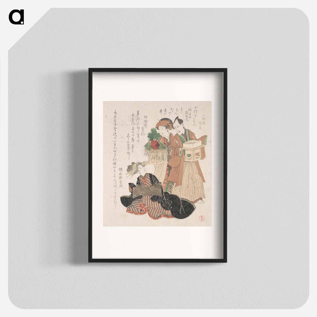Actor Nakamura Utayemon with Two Women Preparing for the New Year Ceremony - 歌川 豊国 Poster. - A5(148×210) / なし ...は取り寄せ中で入荷次第発送します。