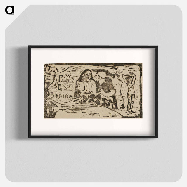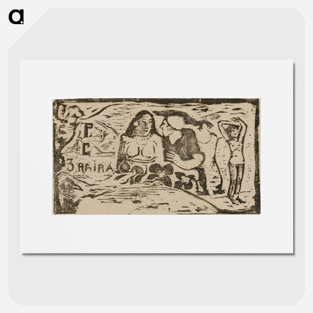 Bust of a Nude Woman and Three-Quarter Figure of a Man with a White Cap in Profile, Third Small Figure at Far Right, headpiece for Le sourire - ポール ゴーギャン Poster.